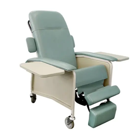 مقعد الكرسي ومساند الأيدي مغلفة بمواد مقاومة للسوائل، سهلة التنظيف والتعقيم.