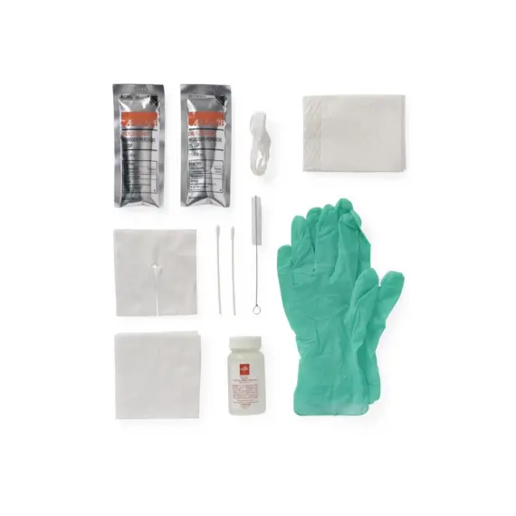 صينية فغر الرغامي مع قسطرة شفط ويسل تيب ١٤ FR، قفازان لمس برائحة الصبار، غطاء، شاشتان غير منسوجتان، رأسان قطنيتان، فرشاة، شريط لاصق مائل ٣٤ بوصة، ضمادات فغر الرغامي ٦ طبقات.