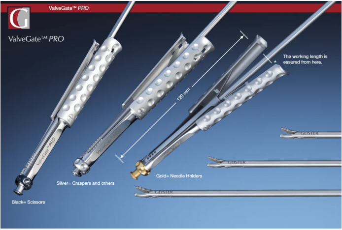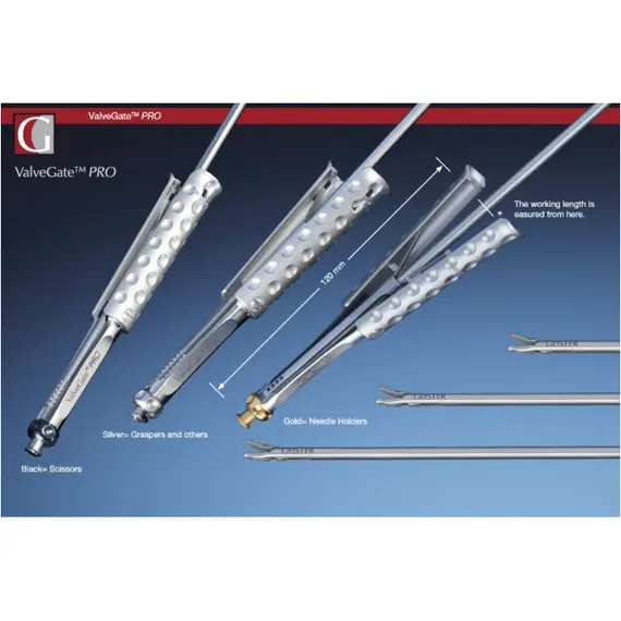 GEISTER has developed the latest and most advanced generation of ValveGate™ MICS for cutting, dissecting, grasping, biopsy and suturing in valve repair, valve replacement and Coronary Artery Bypass Surgeries (CABG). These tools are characterized as being ultra-lightweight and are made entirely from stainless steel with no plastic or aluminum components. The scissors are designed to cut through the hardest calcified tissues, while the needle holders firmly grasp and drive even the largest needles