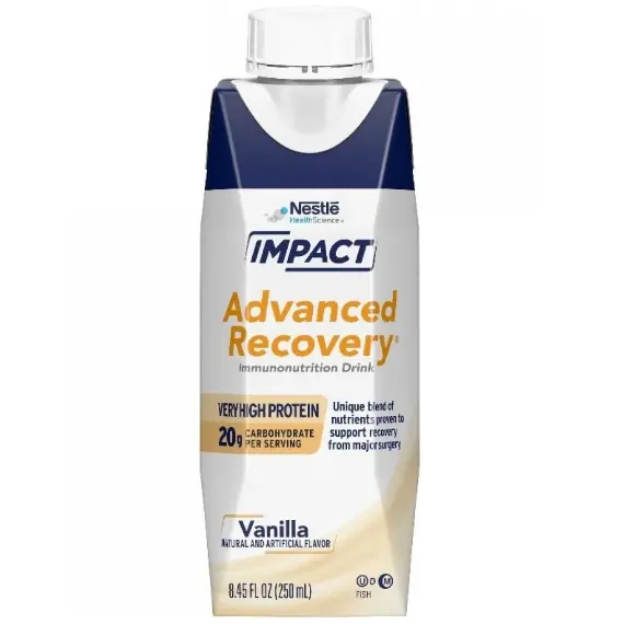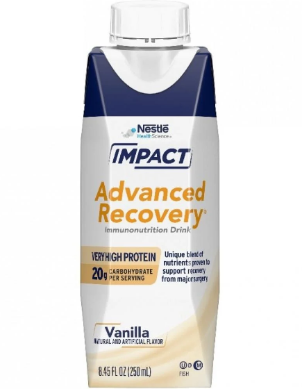 - تحتوي تركيبات IMPACT® فقط على مزيج فريد مدروس من L-arginine وأحماض أوميغا 3 الدهنية والنيوكليوتيدات *. يستخدم هذا المزيج من المغذيات المناعية أثناء الجراحة ، ويساعد في دعم جهاز المناعة ويقلل من خطر حدوث مضاعفات معدية بعد الجراحة بنسبة 51٪ وطول مدة الإقامة في المستشفى.