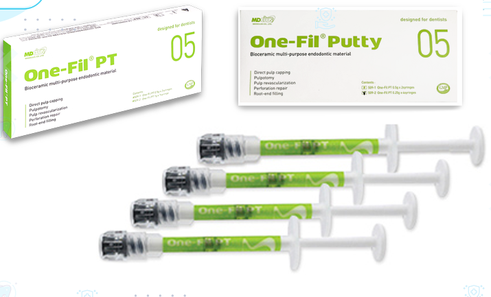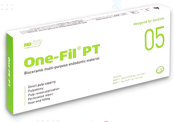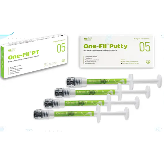 One-Fil PT is a premixed ready-to use, injectable bioceramic cement paste developed for peramanant root canal filling PT applications. One-Fil PT is based on Tricalcium silicate compounds composition, which requires the presence of water to set and harden.