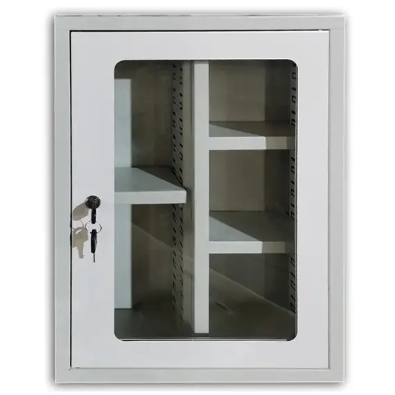 صيدلية معدن للادوية - مع قفل و باب زجاج