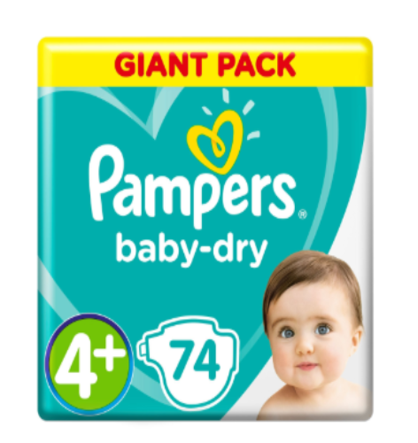 بامبرز حفاضات رقم ٤+ كبير ٩-٢٠ كغ ٧٤ حفاضة