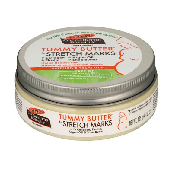 بالمرز تامي باتر زبدة كاكاو المتقدمة بالبيو سي إلاست TMينصح بها بشدة لعلاج علامات التمدد أثناء وبعد الحمل وعند فقدان الوزن.