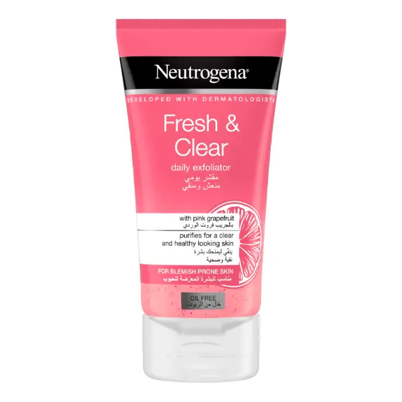 - ينظّف حبّ الشباب مع مفعول الجريب فروت والفيتامين سي. يقوم هذا مقشر نيوتريجينا بتنظيف العيوب والرؤوس السوداء بقوّة قصوى. مع خلاصة الجريب فروت المستخلصة بشكل طبيعي 100% إضافة إلى فيتامين سي ويتميز بحبيباتٍ صغيرة ناعمة للتخلّص من الخشونة ويترك البشرة ناعمة من دون التسبب بجفافها أو تهيّج الجلد.