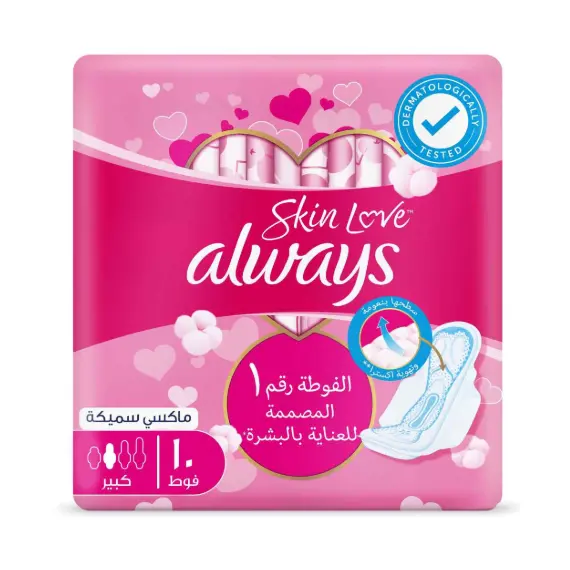 أولويز فوط صحية قطنية ماكسي سميكة كبير زهري ١٠ فوطة