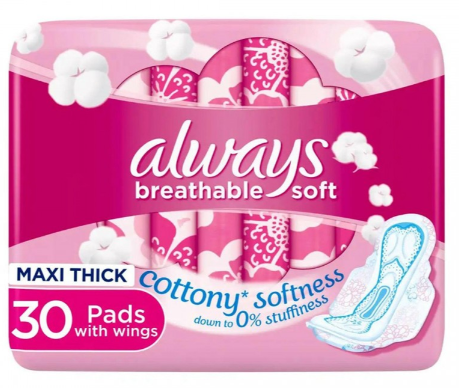 أولويز فوط صحية قطنية ماكسي سميكة كبير زهري ٣٠ فوطة