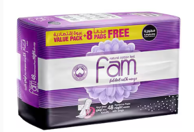 فام ماكسي فوط صحية حجم ليلي بالأجنحة ٤٠+٨ فوطة مجانا