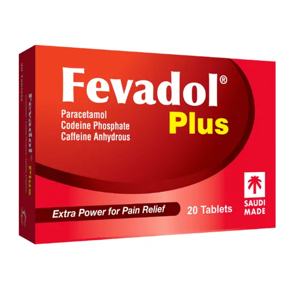 يتكون Fevadol Plus من ثلاثة مكونات نشطة ؛ باراسيتامول وكودايين وكافيين. يستخدم هذا المزيج من المكونات النشطة لتخفيف الألم المعتدل.