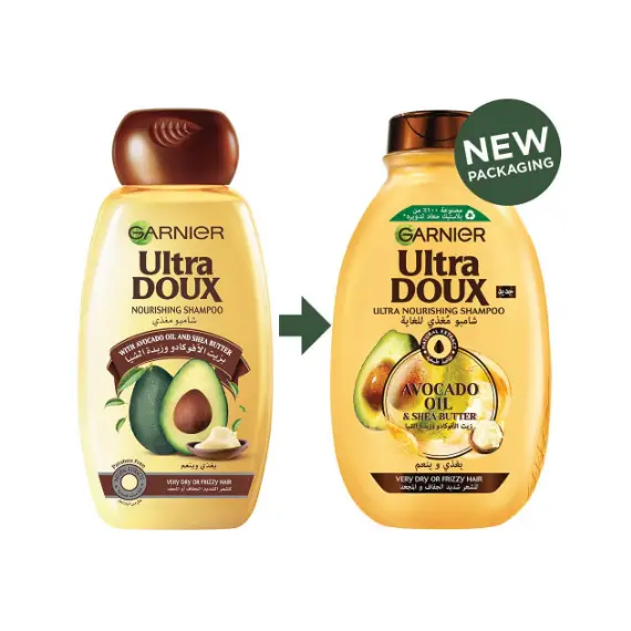 - شامبو ألترا دوكس بزيت الأفوكادو وزبدة الشيا من غارنييه هو وصفة حقيقية لتغذية الشعر الجاف جدًا أو المجعد وإصلاحه، حيث يجمع بين زيت الأفوكادو المعروف بخصائصه المنعمة وزبدة الشيا المعروفة بفوائدها الغذائية الرائعة بقوام كريمي وناعم لا يثقل شعرك.
