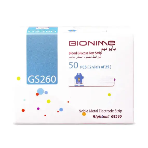 بيونيم شرائط فحص السكر جي اس ٢٦٠ ٥٠ شريط