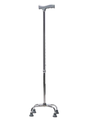 6. القاعدة الرباعية: القاعدة الرباعية تجعل العكاز يقف بمفرده وتحميه من السقوط، وهي مناسبة للأشخاص ذوي الحركة المحدودة.