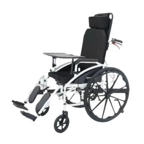 كرسي حمام متحرك مع رافع قدم وظهر طويل مع طاولة طعام