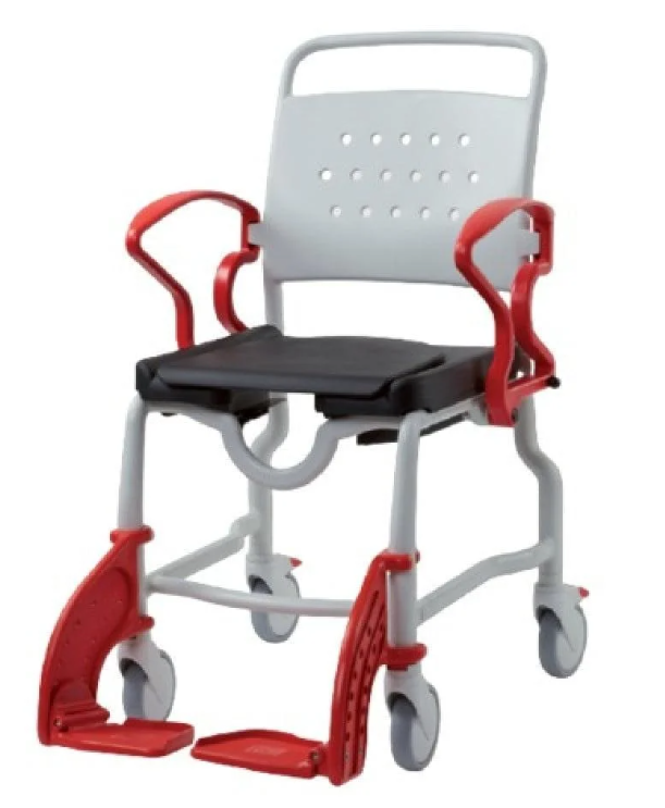 • كرسي الحمام مزود بعجلات صغيرة مع مكابح لتثبيت الكرسي.