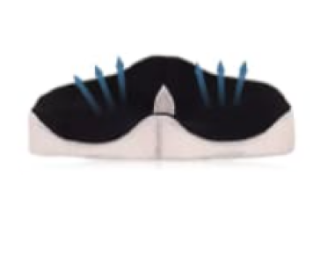 يجمع بين طبقة من ميموري فوم عالي الكثافة وهلام جل مبرّد، مما يساعد على توزيع الوزن بشكل متوازن وتقليل الضغط على مناطق الجلوس.