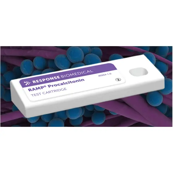 n the absence of infection, the prohormone procalcitonin (PCT) is expressed in thyroid Ccells and subsequently undergoes post-translational cleavages to yield mature calcitonin [1]. The circulating plasma concentration of PCT in healthy individuals is very low [2,3]. Conversely, microbial infection triggers a substantial increase in the expression of PCT in non-neuroendocrine cells throughout the body which are unable to perform the necessary post-translational cleavages resulting in increased serum PCT concentrations [1]. Serum concentrations of PCT increase proportionally to the severity of infection, ranging from slightly elevated in infections with minor systemic inflammatory response to very high values in cases of severe sepsis and septic shock [2-4]. Sepsis is a common and frequently fatal condition that is the result of the body’s excessive inflammatory response to an infection. Despite advances in critical care medicine, sepsis and septic shock are leading causes of death in intensive care units [4-6]. The speed at which appropriate therapy is provided in sepsis cases impacts patient outcomes [6,7]. The traditional method of sepsis diagnosis however, relies on culturing blood, urine or cerebrospinal fluid which takes upwards of 24 hours, lacks sensitivity and specificity and frequently does not correlate to the manifestation of clinical symptoms [2,3]. Alternatively over 20 years of research suggests PCT is an excellent biochemical marker for sepsis as it is highly specific for bacterial infections and correlates strongly with their extent and severity [4,8-12]. Research suggests that a PCT concentration <0.5 ng/mL can be considered normal while concentrations greater than 2 ng/mL are highly suggestive of severe sepsis [3,13,14]. The RAMP® Procalcitonin assay should not be used in the diagnosis or prognosis of conditions other than sepsis such as non-specific complaints, dementia, malaria, tuberculosis, syncope, urinary tract infections and post-cardiac transplant graft failure [2,15].