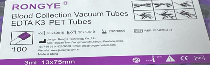 RONGYEⓇ Tubes EDTA K3 PET Tubes