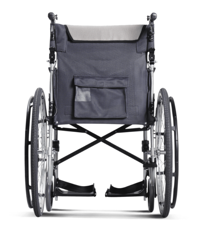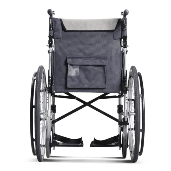يعمل مسند الظهر القابل للطي ومسند القدمين المتأرجح على تقليل الحجم الإجمالي للكرسي المتحرك، مما يسهل تخزينه ونقله.