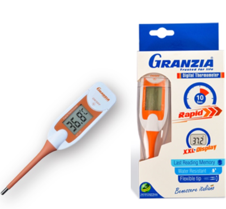 – في 10 ثوانٍ فقط! – مزود بطرف مرن – مضاد للحساسية بفضل مستشعر الذهب – منبه للحمى – دقة عالية (+/- 0.1 درجة مئوية) – مقاوم للماء بنسبة 100% – شاشة عرض كبيرة وإشارة صوتية – ذاكرة – إيقاف تشغيل تلقائي