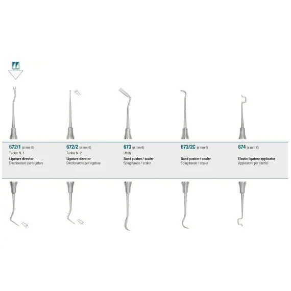 Ligature Director Used to tuck twisted ligature wire ends into interproximal spaces or to push archiwires into position.