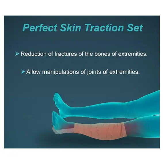 مجموعة جر الجلد G 01 (بطانة PUF) هي نسخة معدلة من وصلة باك. يتم استخدامه لتوفير الجر غير المباشر إلى الأطراف. لا يسبب الحساسية، جاهز للاستخدام، مسامي للغاية، يعزز راحة المريض، فعال من حيث التكلفة، وهو متوفر كمجموعة كاملة، مناسب لحالات الطوارئ، ويحتوي على سلك يحمل في ثناياه عوامل، سريع جدًا في الاستخدام. أنها فعالة من حيث التكلفة. تم تصميم البطانة الإسفنجية لتعزيز احتكاك الجلد من أجل قوة جر فعالة دون انزلاق. يفضل أن يتم وضع بطانة الرغوة بعد إزالة الشعر ووضع طبقة من Tr. الجاوي. يوفر ميزة عدم تقشير الجلد أو أي ضرر للجلود الضعيفة أو الشيخوخة. إنه سهل التطبيق وأسهل في الإزالة. يتم توفير ضمادة كريب عالية الأداء من أجل إمساك وشد البطانة الإسفنجية بشكل أكثر أمانًا. إنه يضمن عدم الانزلاق وقوة الجر الجيدة.