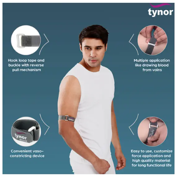 جهاز مريح لتضييق الأوعية يستخدم لتقييد تدفق الدم الوريدي في الزوائد لفترة قصيرة من الزمن. مصنوعة من شريط لاصق متين ومشبك، لضمان قوة انقباض كافية باستخدام آلية السحب العكسي.