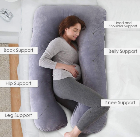- مناسبة للجميع - التصميم الفريد يتبع شكل جسم الإنسان ويكون على شكل حرف U كبير الحجم وطويل بما يكفي ليمتد ويدعم جانبي جسمك. ليس فقط للأمهات الحوامل ولكنها مريحة أيضًا لكل من هي حريصة على الحصول على نوم أفضل ليلًا