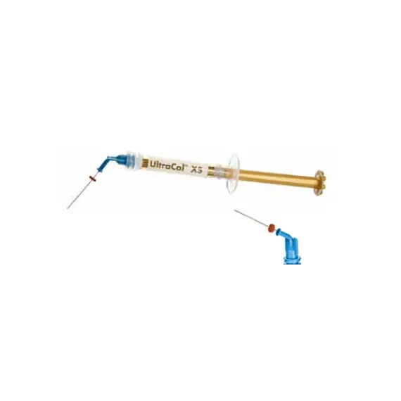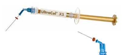 UltraCal XS calcium hydroxide paste is a uniquely formulated paste that is both aqueous and radiopaque, with a high pH (12,5). It is recommended the larger 29 ga NaviTip be used for predictable flow, enabling direct placement. UltraCal XS paste can be thoroughly removed from the canal using Ultradent Citric Acid and a NaviTip™ FX™.