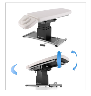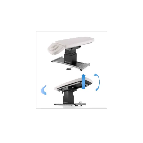 Additional options: • Upholstery resistant to oils (Premium Upholstery). • Built-in surface heating system of table top (Comfort option). • Upholstery of 80 cm width. • F2 lift (2 fixed wheels + 2 castors central lifted).