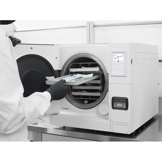 Straightforward, high-performing and affordable: E8 brings together all Euronda’s top technology to strike a perfect balance between innovation and ergonomics, power, consumption and usability. The soft-touch colour display is protected by a polycarbonate screen and enhanced with a distinctive front panel in muted grey. It is possible to select 5 different B cycles and N and S type cycles. The innovative E-Timer lets you set tests and cycles to start at whatever time you like. E8’s traceability system allows for saving data on SD Card and for the integration two different kinds of printer, according to needs. Meanwhile, the Inspection® System helps to make the cleaning process quick and simple. The conductivity meter monitors the water quality and the Dirt Control System directs dirt out of the water system, thus ensuring that E8 is always safe. |
