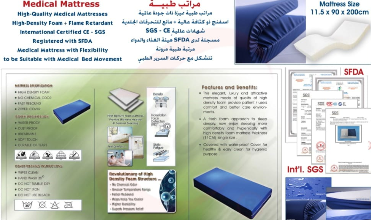 - مرتبة إسفنج عالية الكثافة تتشكل بسهولة مع حركات السرير الطبي.
