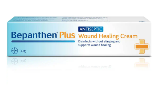 - Bepanthen Plus wound healing cream is a colorless disinfecting cream that helps prevent and combat infection and promote healing