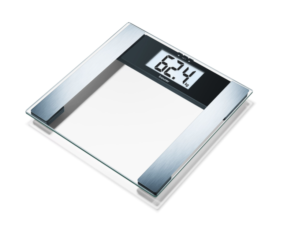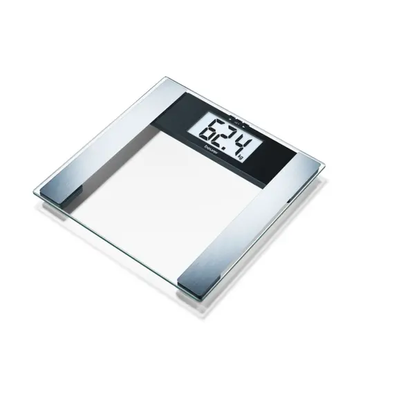 Find out your body weight, body fat percentage, water percentage, and muscle percentage using the Beurer BG 17 Diagnostic Body Scale. The scale has a glass platform and an extra-large, easy-to-read LCD screen.