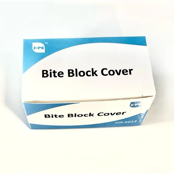 Bite block cover designed for dental clinics to cover bite blocks during imaging or dental procedures. Helps maintain hygiene and reduce cross-contamination. Made from safe medical-grade material and easy to use