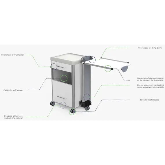 - مواصفات خزانة كمودينو مع طاولة طعام فوق السرير C-EY-01 ميديكال 2000 صناعة تركية: