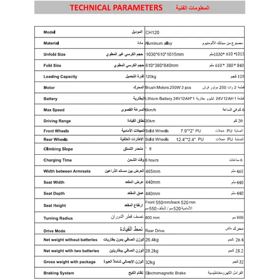 كرسي كهربائي خفيف الوزن قابل للتطبيق CH120