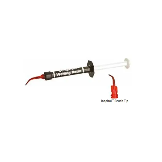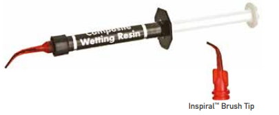 Use Composite Wetting Resin during incremental layering of composite materials. We recommend it be used when the oxygen-inhibited layer has been removed or disturbed (e.g., washing the composite surface following contamination). Composite Wetting Resin may be placed on the composite surface if it has become dry during contouring composite. Use Composite Wetting Resin on an instrument or brush to enhance glide. Composite Wetting Resin greatly facilitates adaptation of the composite restoration and preparation