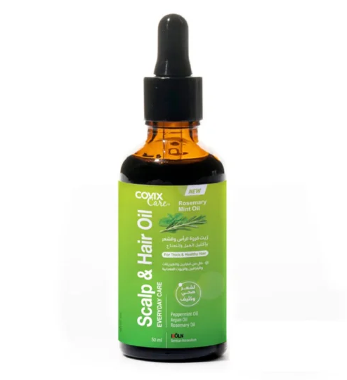 Shop now and nourish your scalp while strengthening your hair with Covix care Scalp &Hair Rosemary Mint oil 50 ml. Formulated with natural rosemary and mint extracts, this oil is perfect for soothing the scalp, supporting healthy hair growth, and providing long-lasting hydration. Suitable for all hair types.