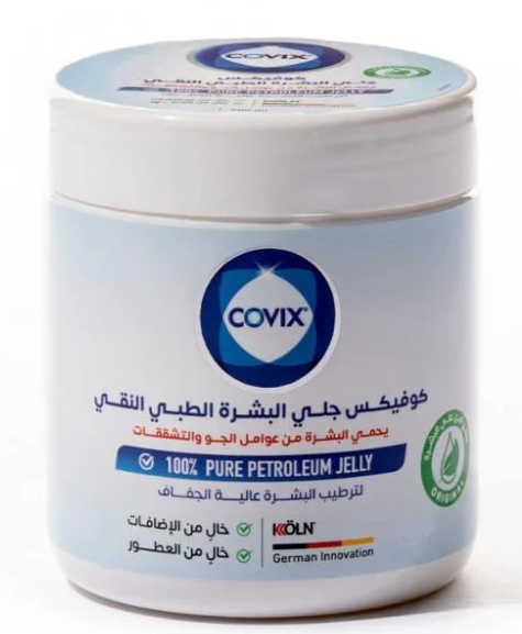 Shop now Covix White Petroleum Jelly 250 ml for deep hydration, skin protection, and healing. This multi-purpose jelly is specially formulated to lock in moisture, soothe irritation, and provide long-lasting protection against dryness.