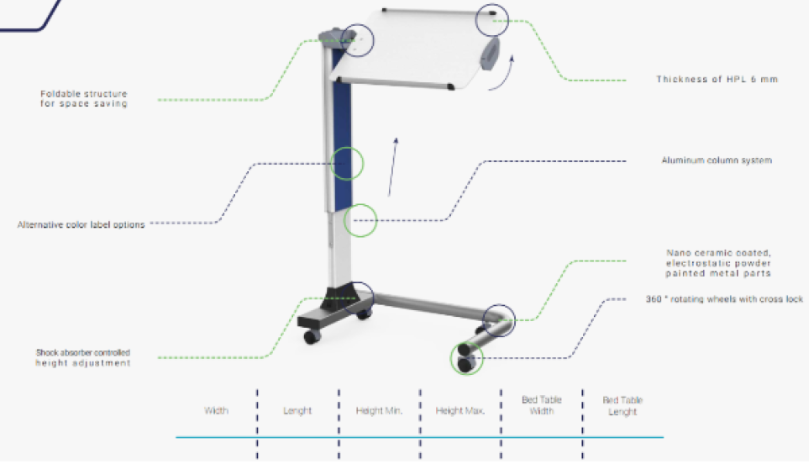 مواصفات طاولة طعام فوق السرير CYM-01 ميديكال 2000 صناعة تركية: