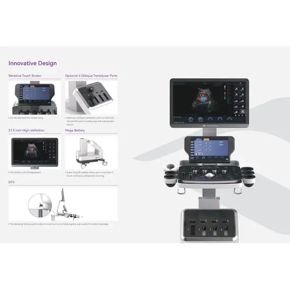 - (Main unit + 21.5inch HD monitor with foldable arm +10.4inch touch screen+ fixed control panel+ 3 active probe sockets + Hard drive (1TB HDD) + DICOM + Multivision + BTM + SNS + Hyper imaging + BTM + OMG+ Smart Workflow + fAssist + fCustom).
