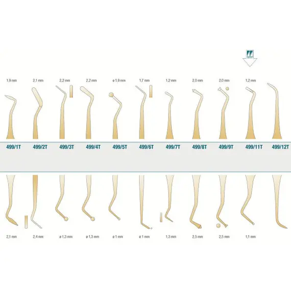 Used in any common obturation technique for finishing the margins of plastic filling restorations. The titanium coating of instruments (in yellow) minimizes the adhesion of composite.