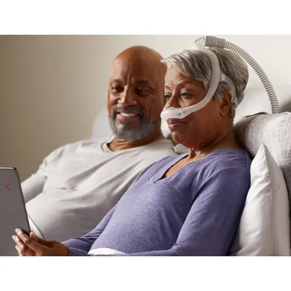 The all-new Philips Respironics DreamWear Silicone Pillows CPAP Mask features lightweight, secure silicone nasal pillows to keep you comfortable all night long. Plus, the lightweight, hollow frame is designed to provide comfort for everyone, including side sleepers. The over-the-head hose connection and swivel attachment help keep your hoses organized while you rest. This innovative mask also allows for an open line of sight with its design, so you can watch TV or relax before bed.