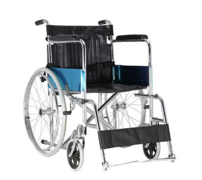 - Navy Blue PVC Seat Cover : This wheelchair features a dark blue PVC seat cover, which provides a great aesthetic appearance in addition to comfort, and is tear-resistant and easy to clean.