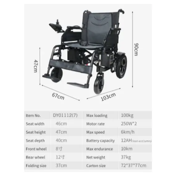 - Battery: The 1112A electric wheelchair is equipped with a 12AH acid battery, allowing the chair to operate for a long time before needing to be recharged.
