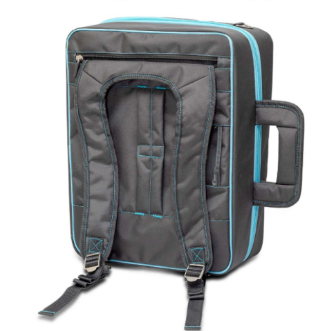 - أحزمة خلفية مدعمة بالإسفنج لحمل الحقيبة على الظهر.