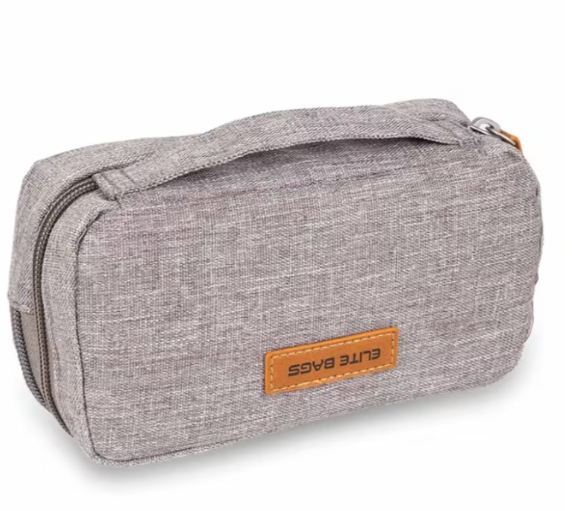 The perfectly sized and compact Elite Diabetics kit bag is cleverly designed to be divided into two compartments. The first compartment is lined with temperature-regulating material and is ideally sized for storing insulin vials or pens, on its own with a gel cooler bag (such as Elite gel).The second pocket features a mesh front pocket and a variety of flexible fasteners designed to hold specific items for treating diabetes, for example, a blood glucose meter, a bottle of test strips, and an insulin pen.This stylish wallet-sized case is available in a range of colors and is easy to slip into a handbag or backpack, ensuring that all necessary medical accessories are at hand and stored at the ideal temperature.