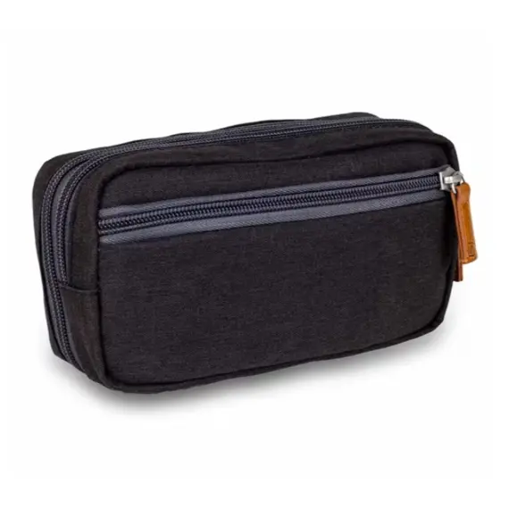 The perfectly sized and compact Elite Diabetics kit is cleverly designed with two compartments. The first compartment is lined with a temperature-regulating material and is ideally sized for storing insulin vials or pens, either alone or with a gel cooler (such as Elite Gel).The second pocket features a mesh front pocket and a variety of flexible fasteners designed to hold specific items for treating diabetes, for example, a blood glucose meter, a bottle of test strips, and an insulin pen.This stylish wallet-sized case is available in a range of colors and is easy to slip into a handbag or backpack, ensuring that all necessary medical accessories are at hand and stored at an ideal temperature.