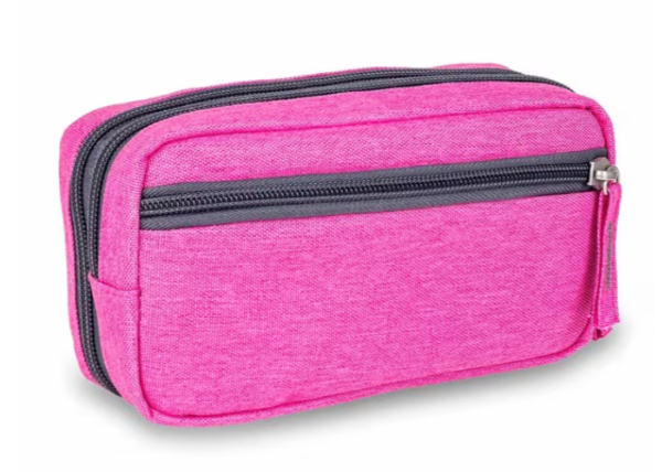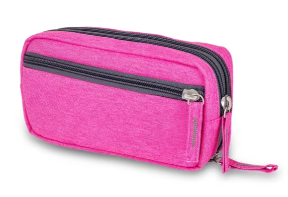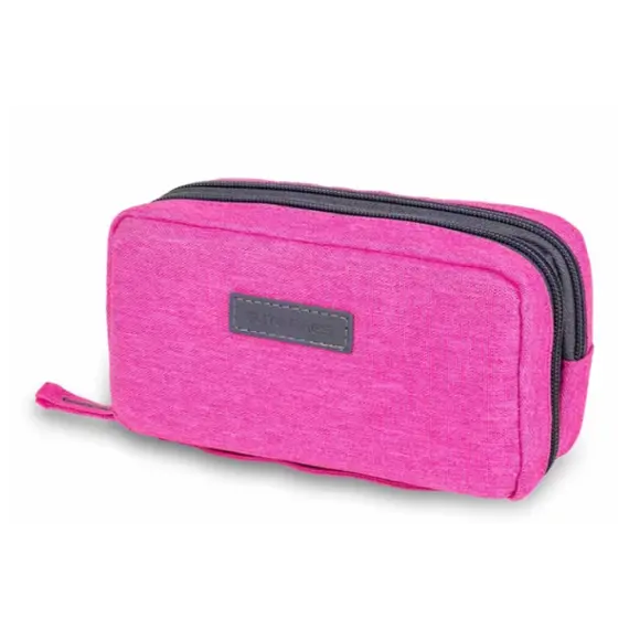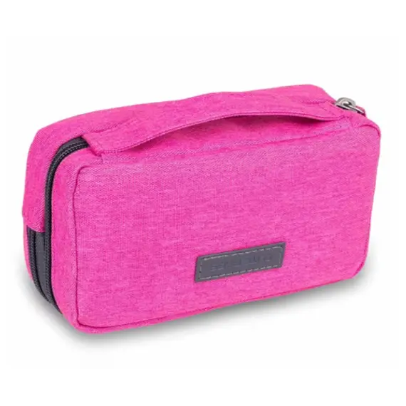 The second pocket features a mesh front pocket and a variety of flexible fasteners designed to hold specific items for treating diabetes, for example, a blood glucose meter, a bottle of test strips, and an insulin pen. This stylish wallet-sized case is available in a range of colors and is easy to slip into a handbag or backpack, ensuring that all necessary medical accessories are at hand and stored at the ideal temperature.