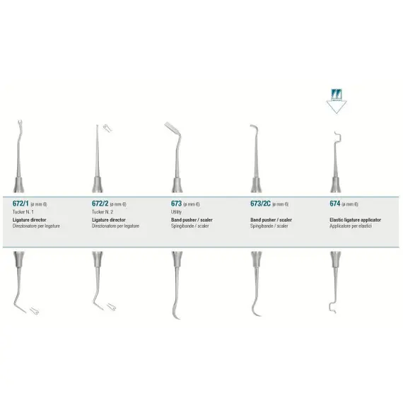Used to tuck and direct ligatures under the archwire or bracket wings or to push archwires or auxiliaries into position.